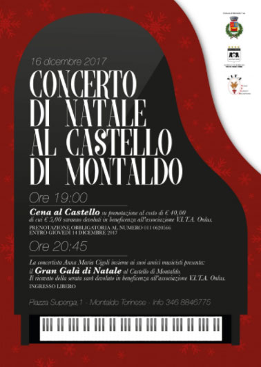 Il "Castello di Montaldo", con il patrocinio del Comune di Montaldo Torinese, organizza per il giorno 16 dicembre alle ore 20:45 il GRAN GALA' DI NATALE - Ingresso libero - le offerte saranno devolute in beneficenza all'associazione V.I.T.A. Onlus.