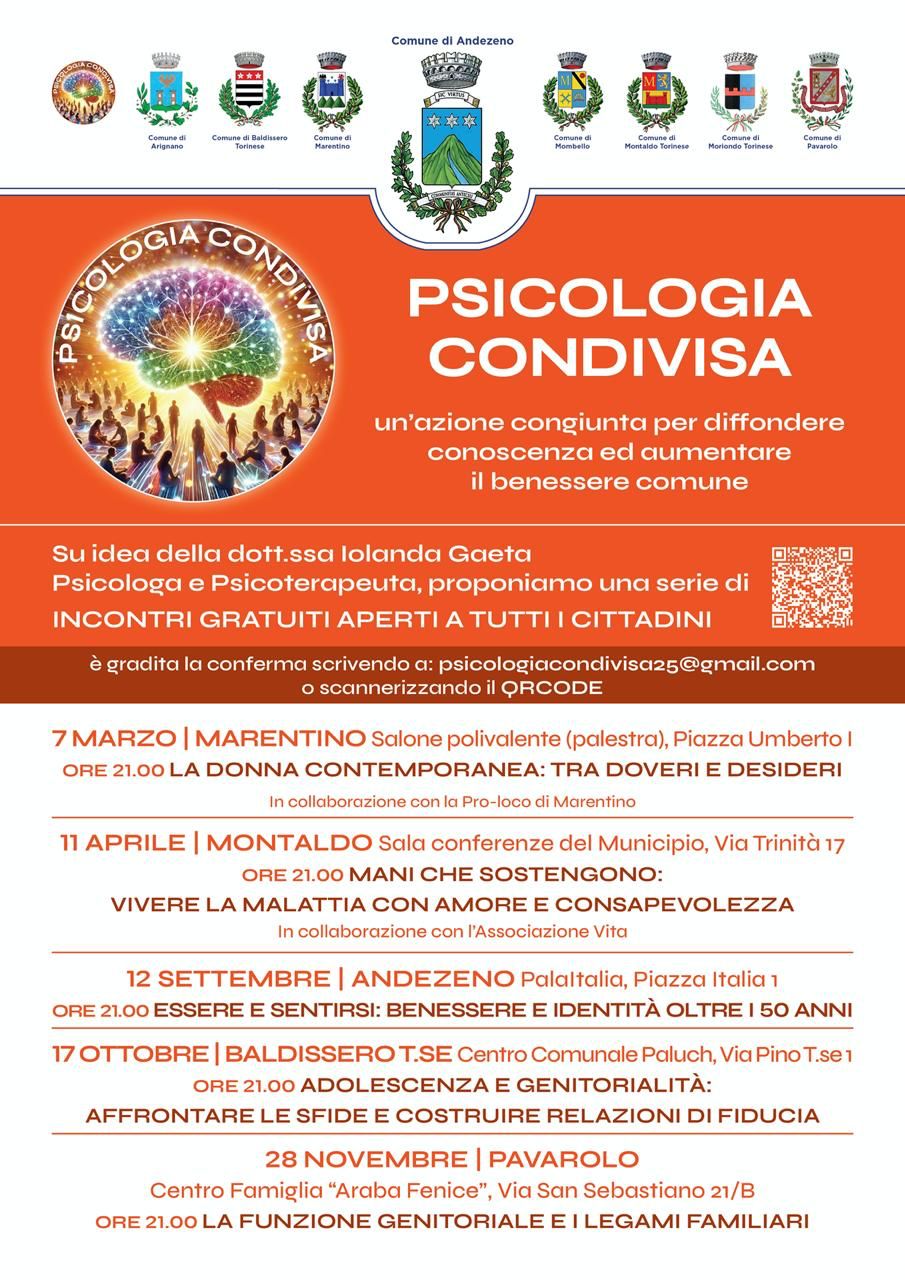 Una serie di incontri gratuiti aperti a tutti i cittadini con la Dott.ssa Iolanda Gaeta, Psicologa e Pscicoterapeuta, su diverse tematiche.