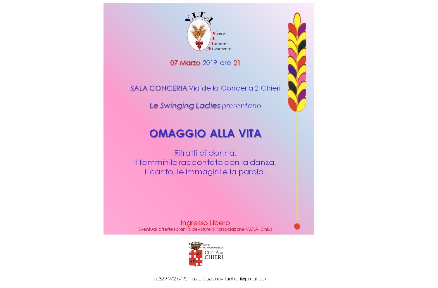 Lo spettacolo - presentato da "Le Swinging Ladies" - fa parte di un cartellone più ampio che vede la partecipazione dei Comuni di Chieri e Pino Torinese.