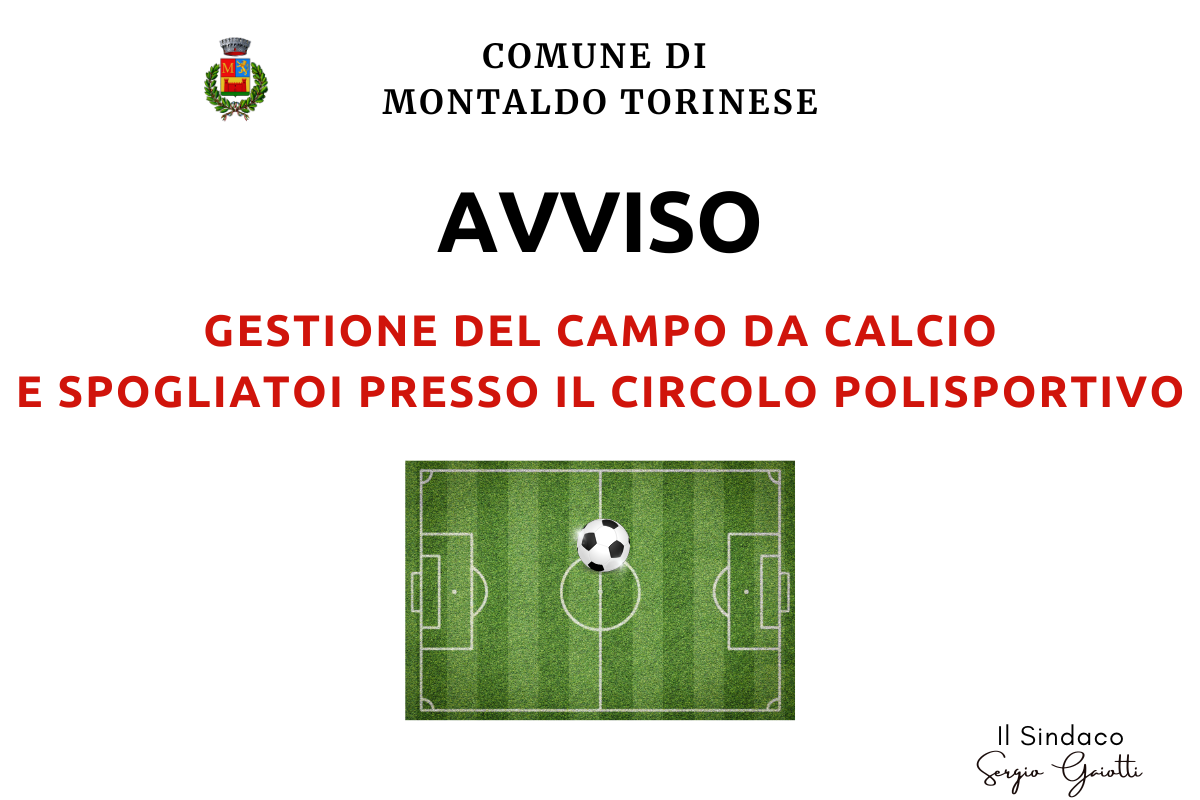 L'Amministrazione Comunale rende noto che è stata indetta una procedura di gara per “Concessione del campo da calcio e degli spogliatoi presso il Circolo Polisportivo Montaldese”.