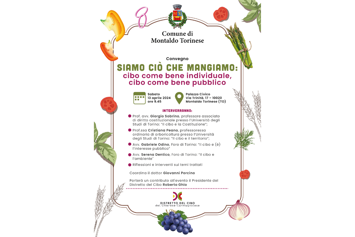 - Prof. avv. Giorgio Sobrino, professore associato di diritto costituzionale presso l’Università degli Studi di Torino: “Il cibo e la Costituzione”;