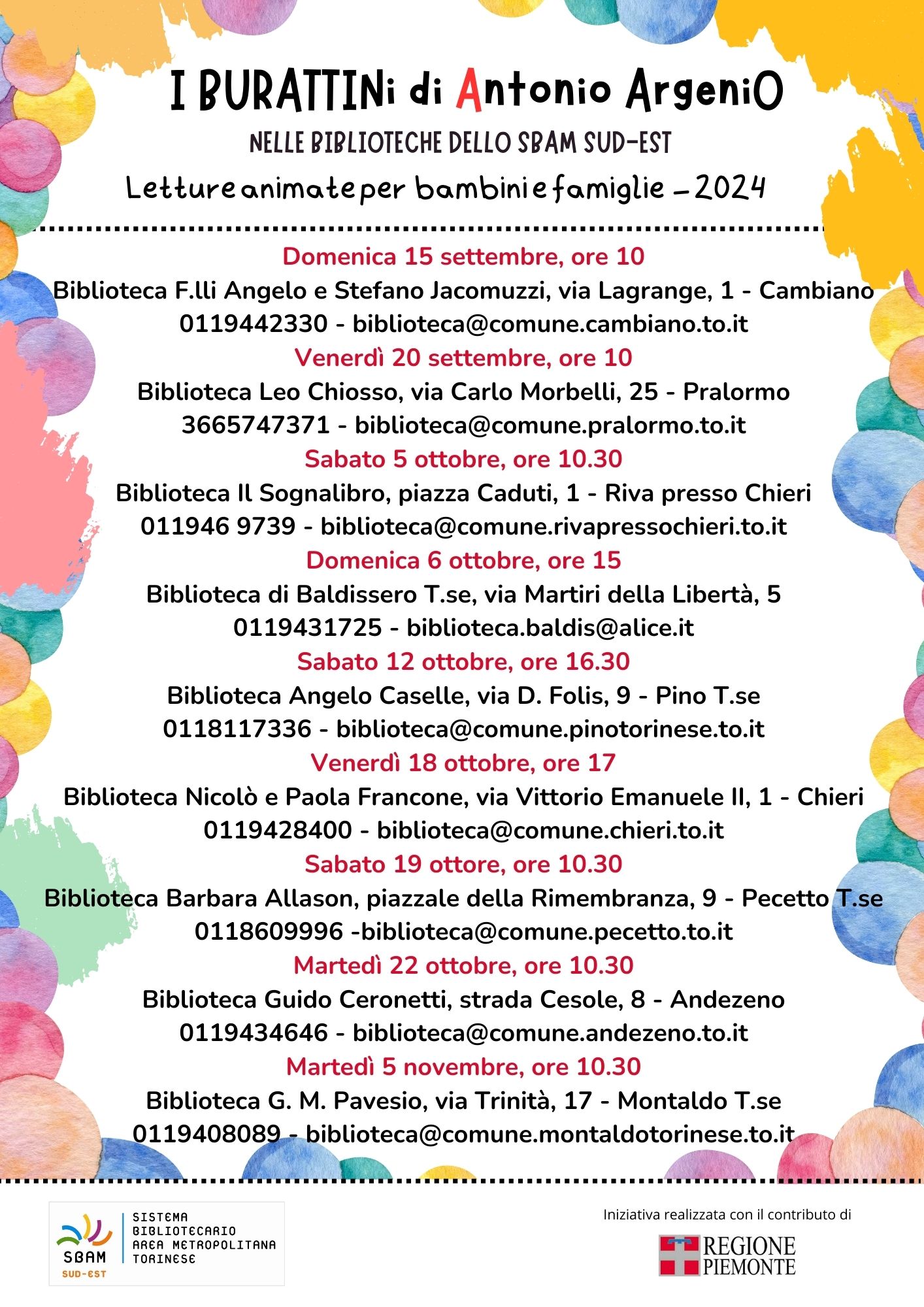 - I burattini di Antonio Argenio nelle biblioteche dello SBAM Sud-Est - Montaldo T.se 5/11/2024[.pdf 2,54 Mb - 15/10/2024]