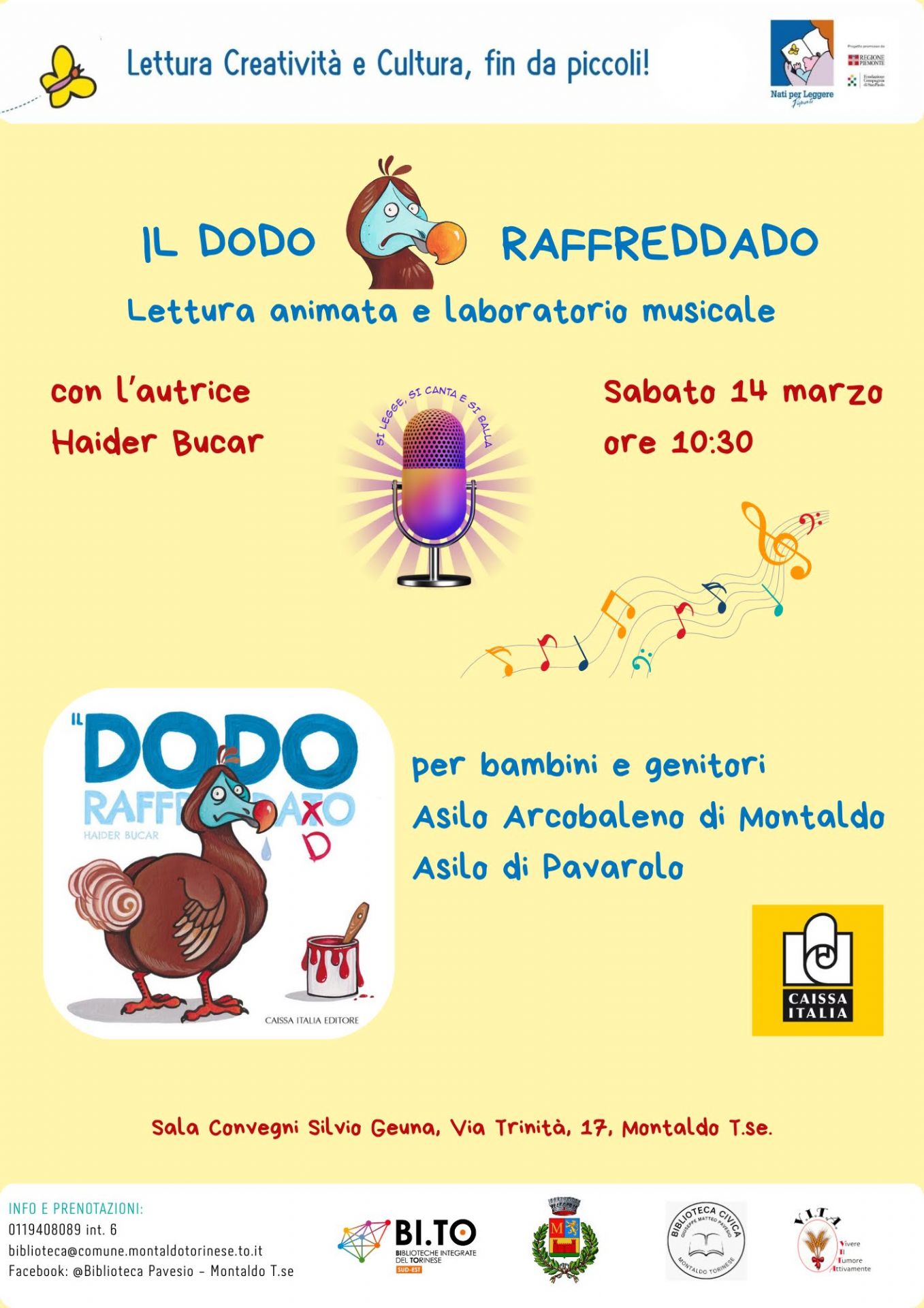 Lettura animata e laboratorio musicale con l'autrice Haider Bucar presso la Sala Convegni Silvio Geuna.