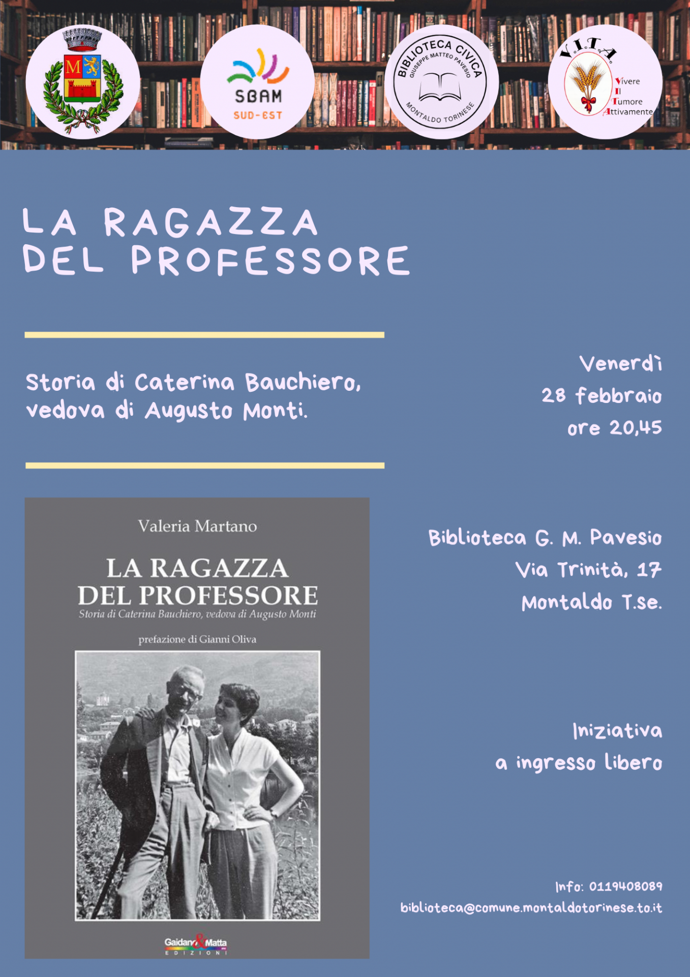 Presentazione del libro di Valeria Martano: "La ragazza del professore. Storia di Caterina Bauchiero, vedova di Augusto Monti. "