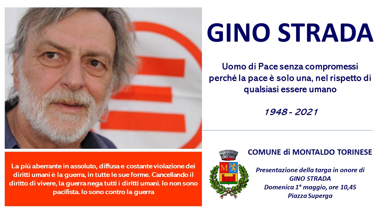 Domenica primo maggio alle ore 10.45 nella centrale Piazza Superga del nostro Comune scopriremo una targa in perenne memoria di Gino Strada.