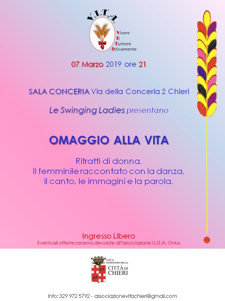 Lo spettacolo - presentato da "Le Swinging Ladies" - fa parte di un cartellone più ampio che vede la partecipazione dei Comuni di Chieri e Pino Torinese.